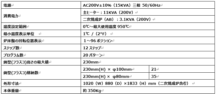 回転式電気炉は、炉内の温度分布が均一で、鋳型の焼けムラを最小限に抑えます。また焼成中に鋳型の位置を変更する必要はありません。