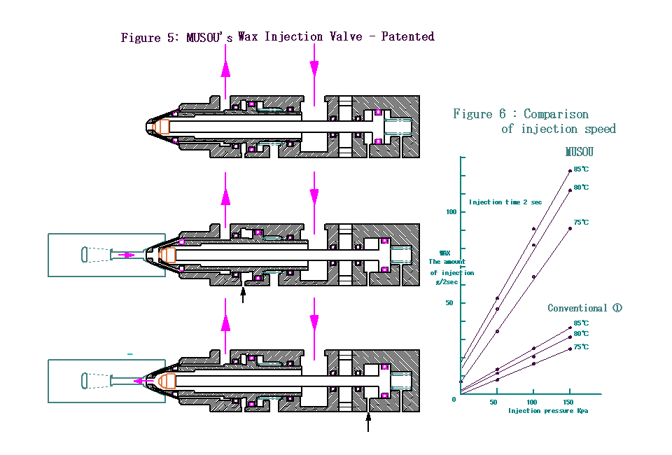 ◆ Wax Injection by Light Clamp Force, Low Pressure and High Speed