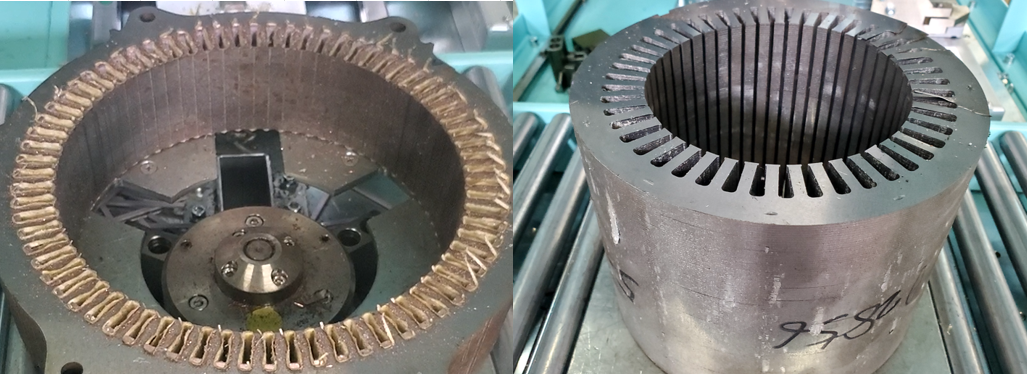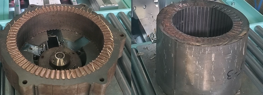 The HV(EV) vehicle copper wire cutter cuts the copper wires on both ends of the motor core and then pushes out the copper wires inside the slots.