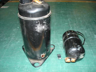 ブラケットやパイプ等を、コンプレッサー(黒モーター)から除去します。